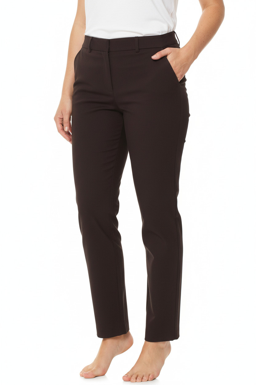 Dámské bavlněné hnědé elegantní rovné kalhoty s kapsami Vel. 40