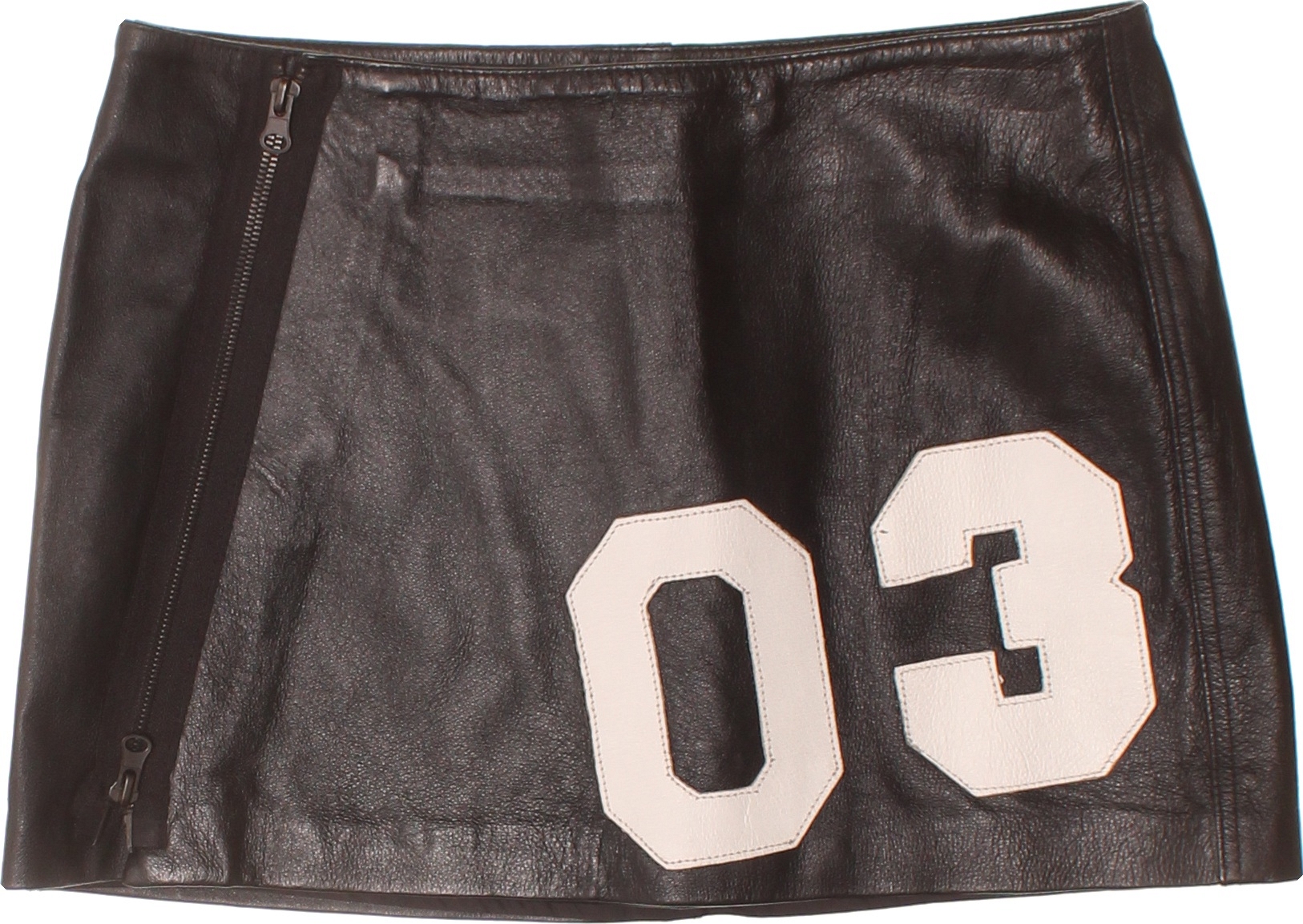 Phard Koženková mini sukně černá se zipem a čísly 03 Vel. EU 40