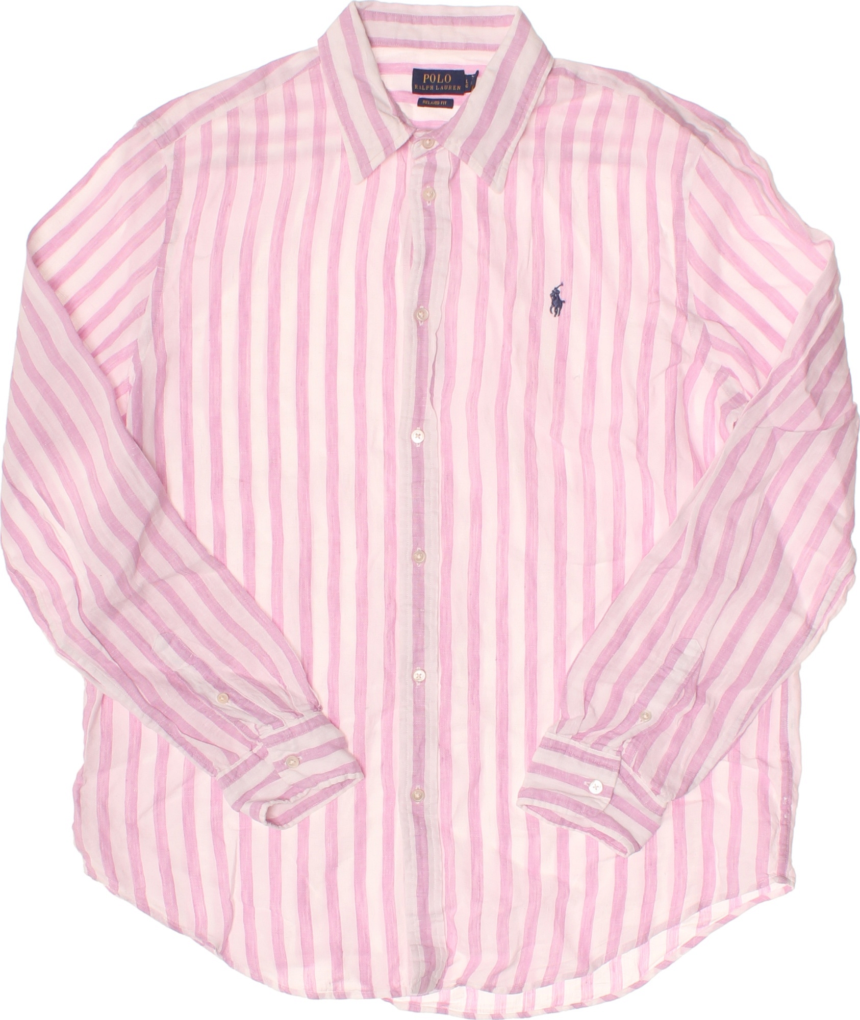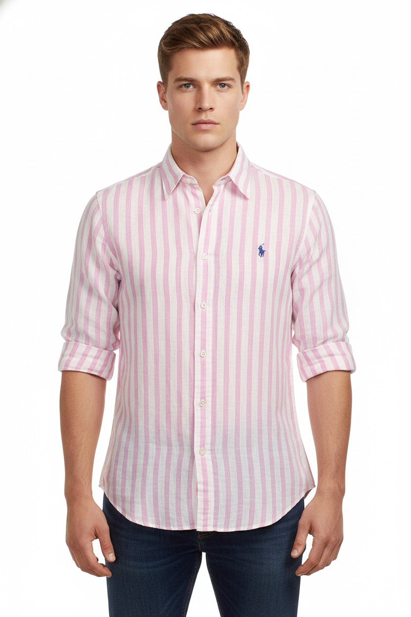 Ralph Lauren Pánská košile s dlouhým rukávem růžová pruhovaná ležérní Vel. L