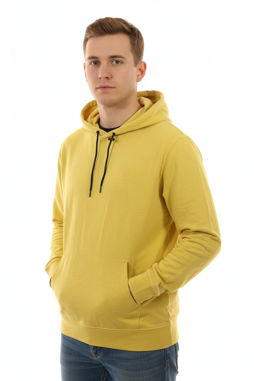 s.OLIVER Pánská žlutá mikina s kapucí přes hlavu streetwear s klokaní kapsou Velikost XXL