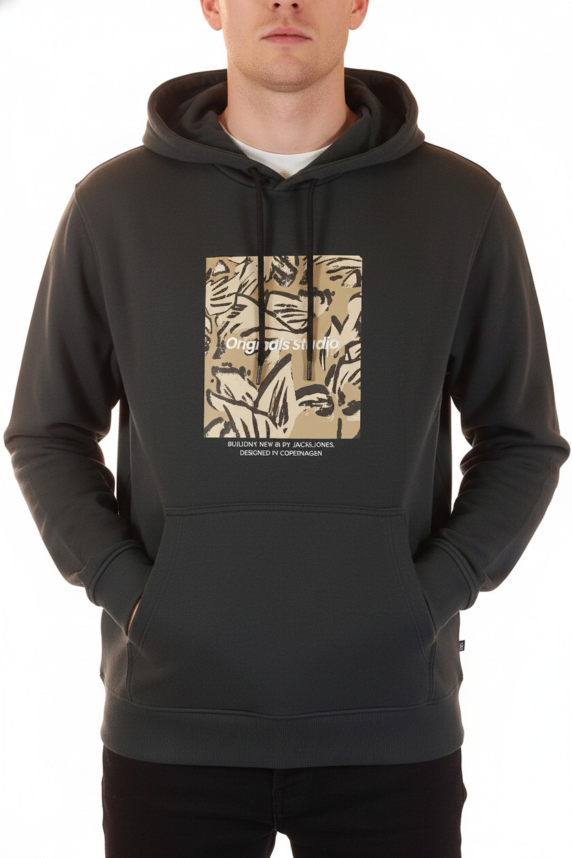 JACK & JONES pánská bavlněná mikina s kapucí a potiskem přes hlavu Velikost L