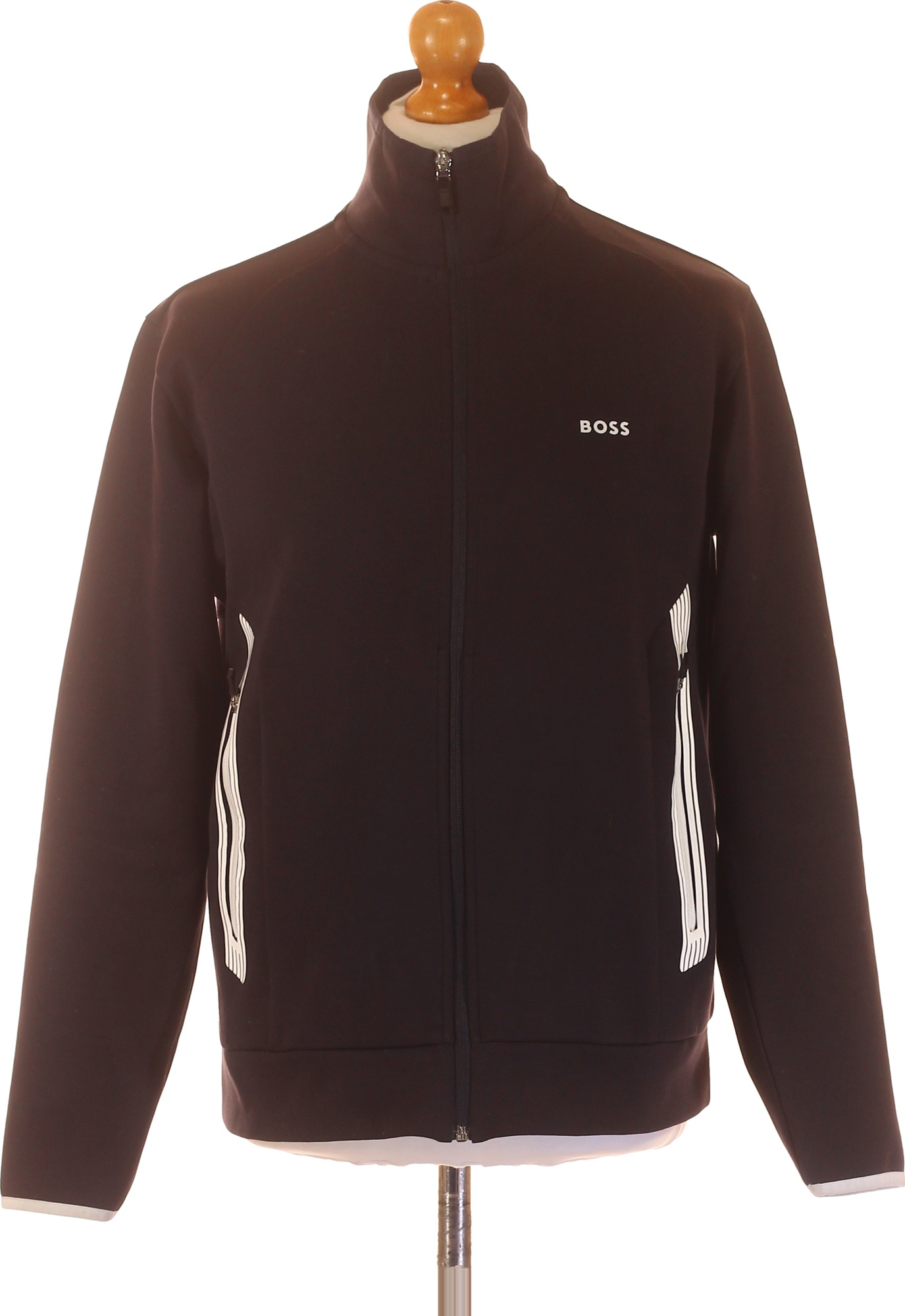 Hugo Boss Pánská bavlněná mikina na zip tmavě černá sportovní bez kapuce Vel. M