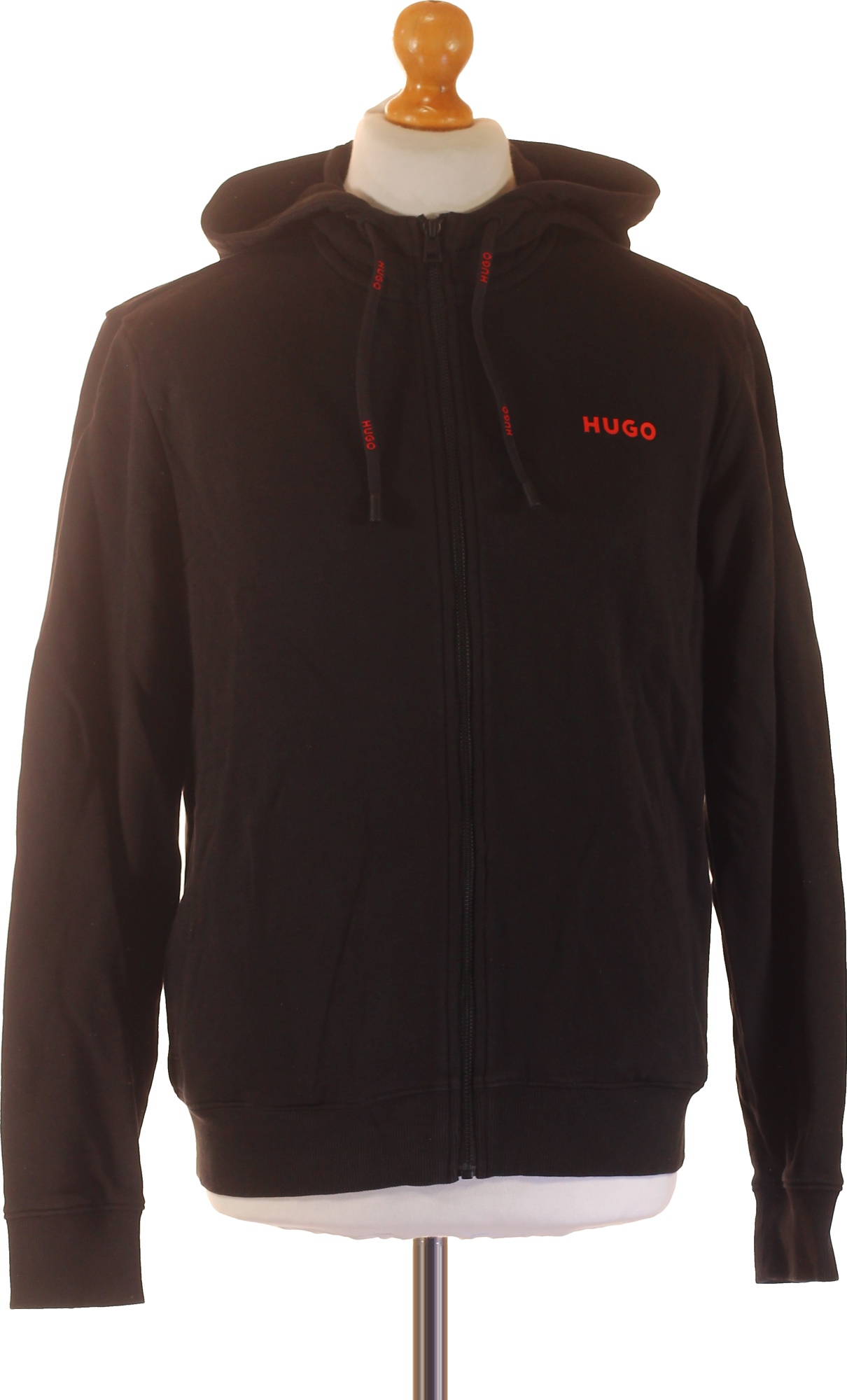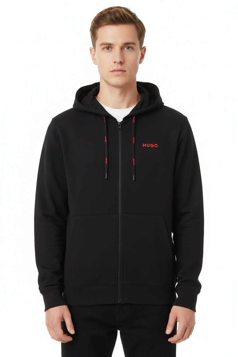 Hugo Boss Pánská černá mikina s kapucí a červeným nápisem na zip Vel. S