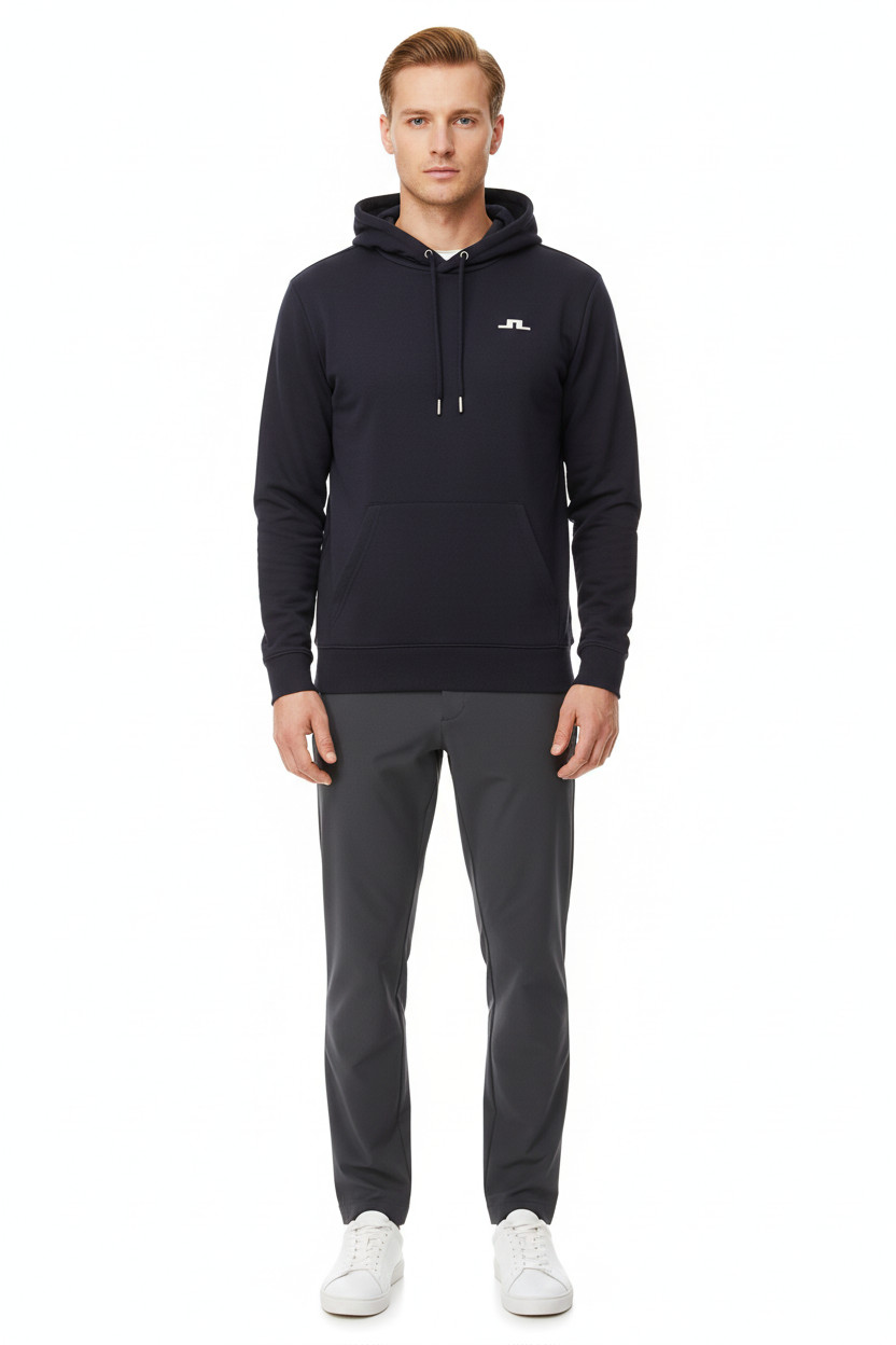 J.Lindeberg Pánská tmavě modrá polyesterová sportovní hoodie s kapucí přes hlavu Vel. M