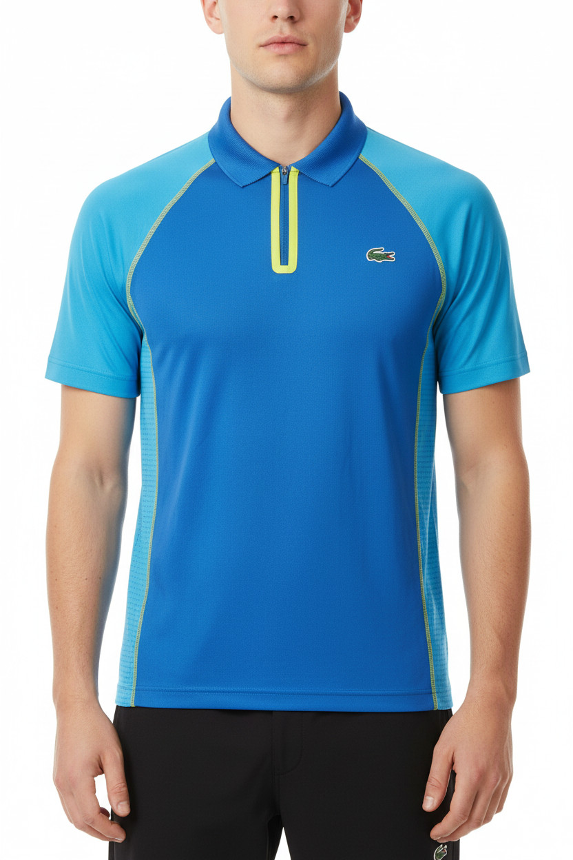 LACOSTE Pánské sportovní polo tričko modré se zipem a raglánovým rukávem Vel. M
