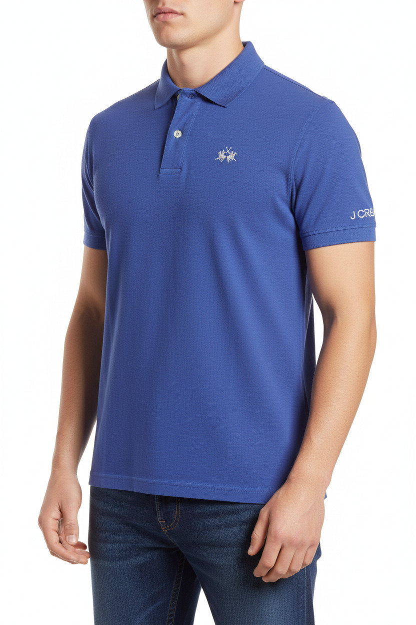 La Martina Pánské bavlněné modré polo tričko s krátkým rukávem s výšivkou Vel. M