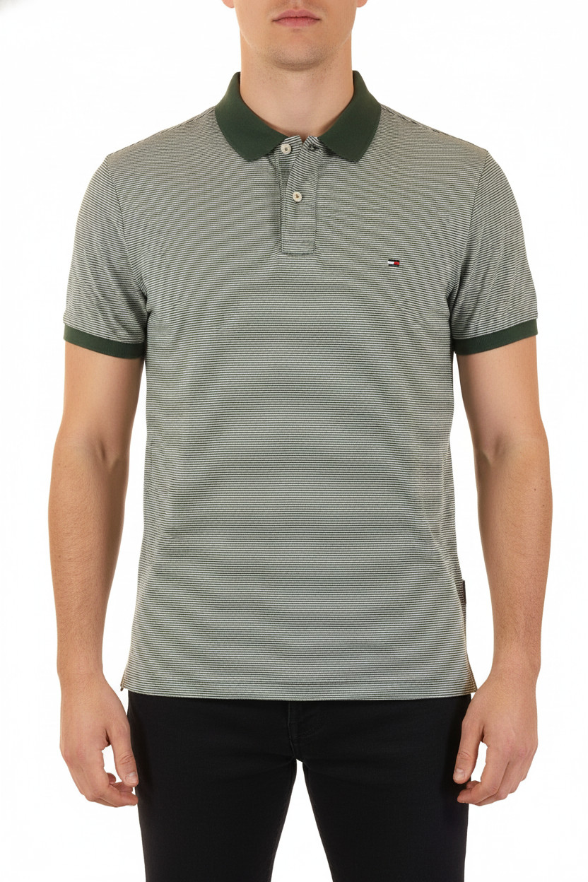 TOMMY HILFIGER pánské tričko s krátkým rukávem pruhované s límečkem bavlněné Vel. l