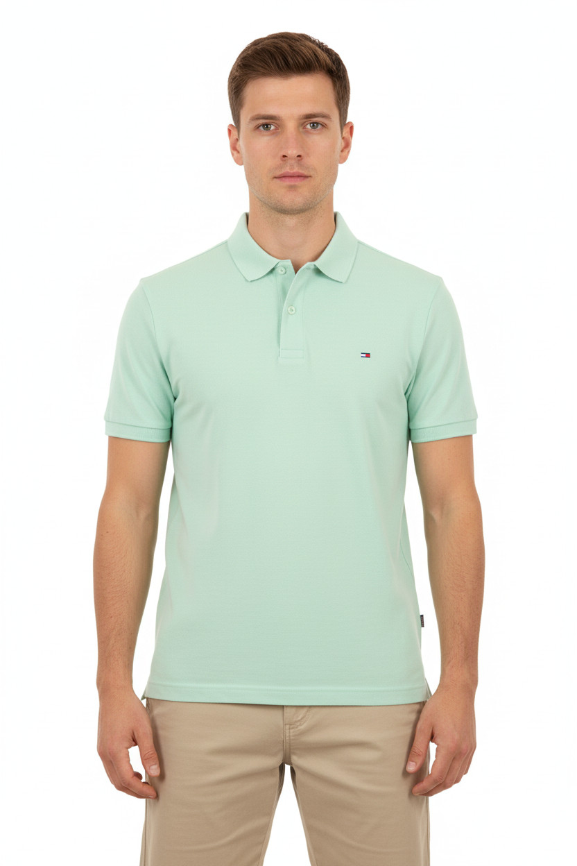 TOMMY HILFIGER Polo světle zelené jednobarevné basic s krátkým rukávem Velikost L