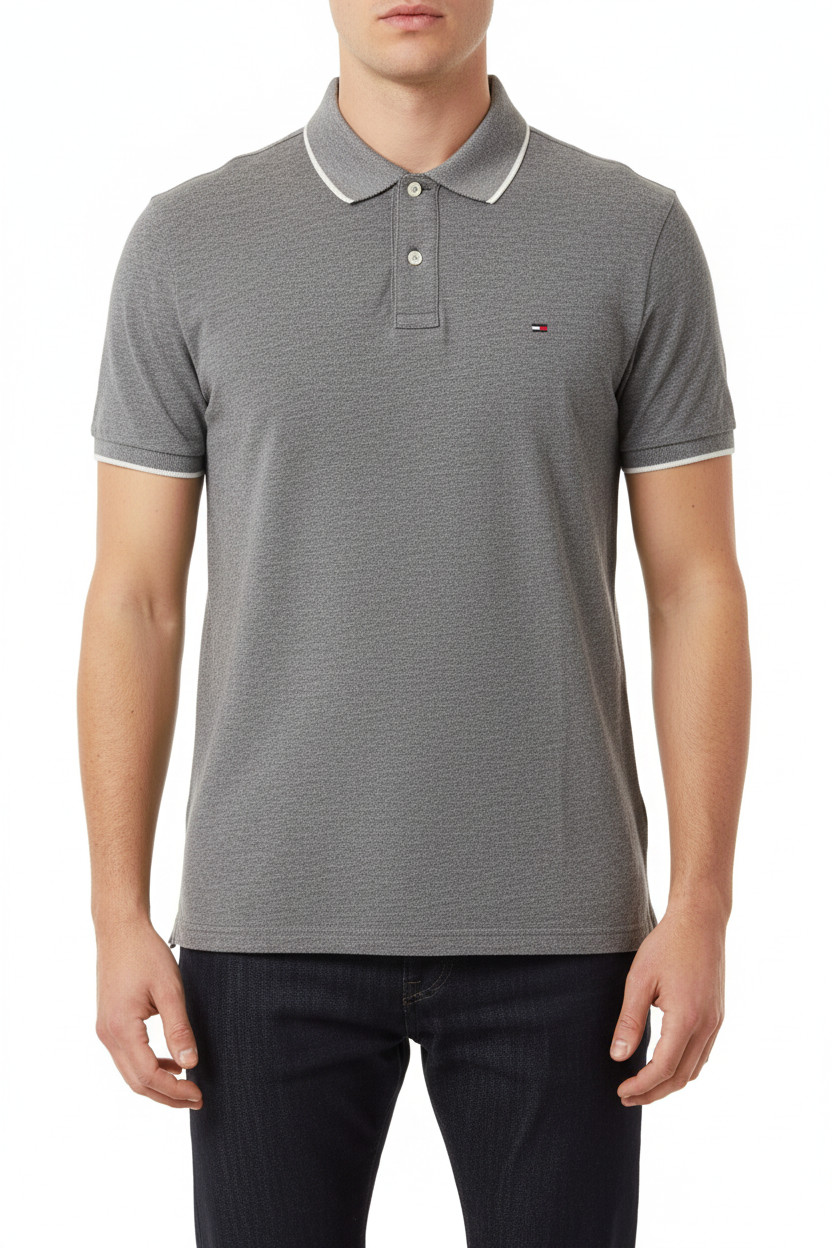 TOMMY HILFIGER Pánské tričko s krátkým rukávem a límečkem šedé Velikost EU XL